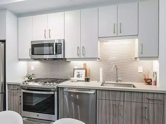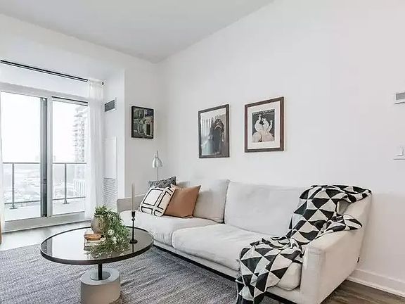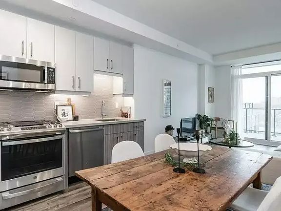 This 609 sq ft 'Louvre' model is loaded w/ feat incl designer series wide-plank laminate flrs, a gorgeous kitch w/ Euro-style 2-tone cab w/ extended uppers, S/S app, quartz, under-mount S/S sink & porcelain tile backsplash, dining space, spacious living rm w/ sliding doors leading to a 19.5' x 8' balcony w/ northern views, primary retreat w/ oversized closet