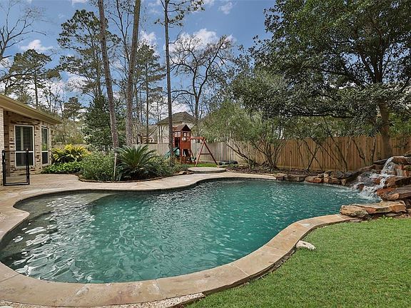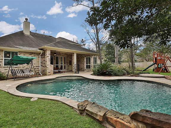 Stunning 1.5 story home with a pool located in the desirable neighborhood of Spring Trails. As you enter the home, there is a living room to your left. It has floor to ceiling book shelves and could be used as a study. All 4 bedrooms and 3 full bathrooms are on main floor with a game room and half bath upstairs. The kitchen offers ample storage and has a large island as well as a large bar area. The family room is spacious and open to the kitchen, breakfast area, and dining room. Custom built-in bookshelves offer hidden storage behind the decorative shelves for all your games. The master bathroom is luxurious with His and Her sinks, jetted tub, stylish frame-less shower and huge closet. The wall of windows in the family room looks out to the sparkling pool and the wooded preserve adjacent to the home. The pool has a removable fence around it for safety. The location is perfect with close proximity to schools and easy access to Grand Parkway, Hardy Toll Road, I-45, and The Woodlands.