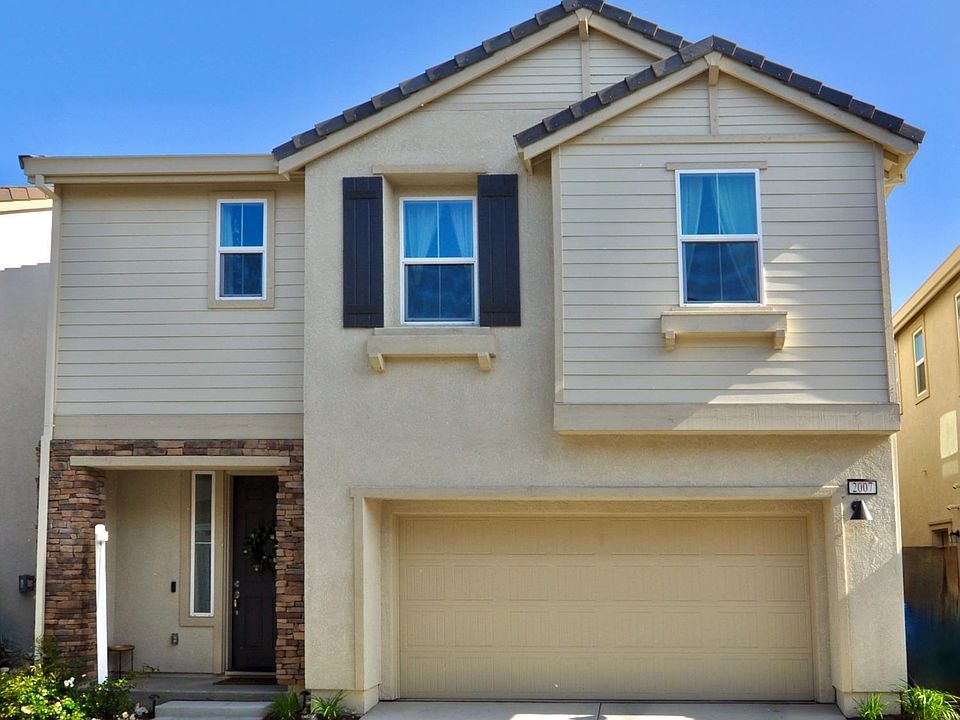 Discover the home you've been waiting for in the highly sought-after University District! Upon entering, you'll be captivated by the formal entryway with soaring ceilings, setting the tone for the entire home. Step into the light-filled family room seamlessly flowing into the kitchen, creating a cozy and inviting space. The kitchen boasts a stunning island, stainless steel appliances, ample cabinetry and generous counter space. Adjacent to the kitchen is a spacious dining area. Step through the glass slider leading to the backyard, to find a large covered patio, the perfect spot for entertaining and relaxing. Ascending the staircase to the upper level, three bedrooms await, as well as a a loft-style bonus room/family room and spacious laundry room offering practicality and convenience. The upstairs bonus room can serve as an additional bedroom, office, or anything that suits your needs! The spacious primary suite features two vanities, soaking tub, a glass enclosed shower and a large walk-in closet. The two additional bedrooms are also generously proportioned. The paid-off solar system, adds significant cost savings. Access to the home and garage are via a shared driveway off of the street, you will love the convenient location of this home!