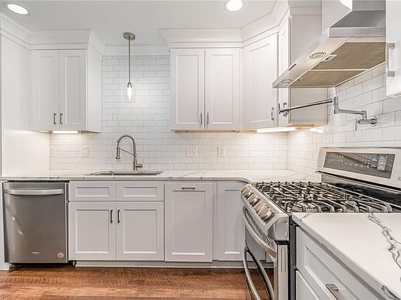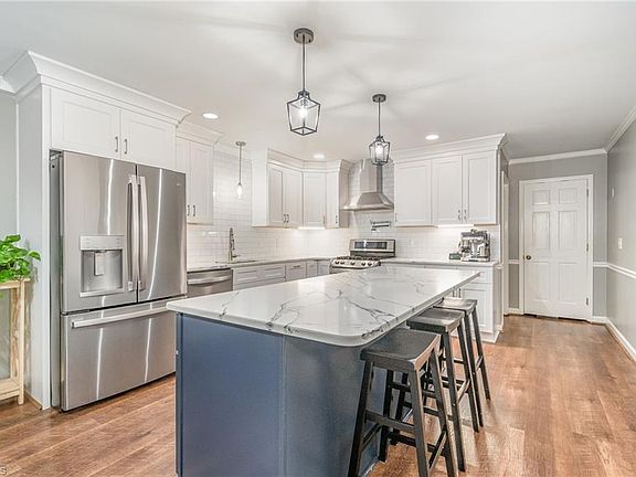 Porch gas hookupGorgeous blue islandCrown moldingDog caveLockers in the laundryBuilt-in deskQuartz counters