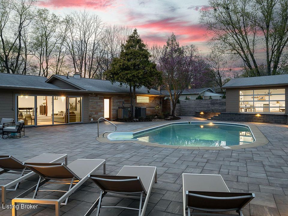 Experience a perfectly designed Mid-Century Modern classic home that rests peacefully in a private setting with an in-ground pool. Loads of natural light thanks to the large windows throughout this delightful home make it blend seamlessly with nature. Special features include specially milled hardwood floors in the main living space that are 5'' wide character-grade white oak, Bedford stone exterior with a unique coloration, stylish and modern lighting throughout and 4 bedrooms and 4 full baths with 3 bedrooms having their own private baths. The open, stunning kitchen has a quartz peninsula and island, floating wood shelving, stainless steel appliances, vent hood and colorful, cheerful tile! The large family room features a succulent garden area that divides the room from the kitchen. The mid-century aesthetic can be seen everywhere in the home. The primary bedroom includes a luxurious en suite with a custom walk-in shower, vessel tub, double vanity, water closet and a large walk-in closet with adjustable shelving. The three-season cabana/pool house with 12' glass overhead door overlooks the pool and private lot. New cabinets and a mini fridge were added to the pool house along with a TV and Sonos system for enjoyment and entertainment. Other features of this home are the oversized 2 + car garage and a back-up generator for peace of mind. In addition, the current owners have had new pavers, a retaining wall and lighting installed around the pool, added new sliding patio doors, cabinets in the laundry room, a crawlspace vaper barrier and spray foam insulation. The pool has a new pool liner (2021), a new pool pump, new pool cover, new low voltage pool lights and a new pool cleaner robot. This tucked-away gem enjoys direct and adjacent access to the Anchorage walking trail, Willow Lake and nature.