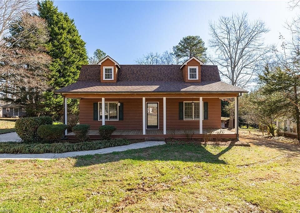 Beautiful log cabin style home in an established neighborhood. Come and see this 4 bedroom, 2 full bath house that has the primary bedroom w/walk-in closet on the main level. Soak in the ambiance from the natural Gas log fireplace in the large living room which leads into a formal dining area for gathering with family & friends. Handmade, custom built solid wood cabinets can be found in the kitchen and main level laundry room. The 2nd floor has a spacious 27' x 13' bedroom and two additional bedrooms plus full bath. Brand new carpet throughout most of the home plus new luxury vinyl plank in the dining room, living room and laundry. Enjoy sipping a cup of tea on your covered front porch or relax on your brand new deck. Spectacular 30' x 24' storage building/workshop with cement floor and electrical. Additional storage building and lien-too storage area off back of workshop. 20 minutes away from the new Toyota Battery Plant in Liberty, NC. 1 yr home warranty for buyers. SEE AGENT REMARKS