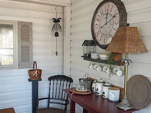 Park model with stick built addition and 3 season room all electric home septic on community well new HVAC unit 16 by 25 wired outbuilding and industrial carport