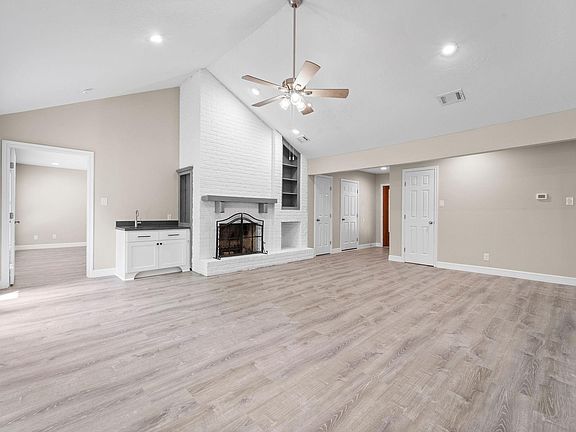 Updated and extensively remodeled within the last year! One-story living with 4 bedrooms in The Woodlands up-front Location! All new lighting & 36" doors throughout. Open floor plan, high ceilings. No carpeting in the home-all flooring is either tile or durable vinyl-plank wood-look flooring. New double paned windows provide an abundance of natural light throughout. Remodeled Kitchen features new soft-close cabinet doors and drawers, granite counters, stainless steel appliances. Vaulted family room with painted brick floor-to-ceiling gas log fireplace and wet bar! Huge Dining area with walls of windows overlooking private back yard. Large main bedroom with en-suite remodeled bath with dual sinks, granite counters, private commode, remodeled shower/tub! Three add'l bedrms & remodeled 2nd bath. Quiet street, extremely private & large back yard with huge wood deck & additional patio for entertaining! Just minutes to I-45 or Market St/Waterway/mall. New roof 2021 & new electrical panel.
