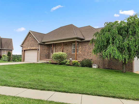 Beautiful 5 bedroom, 3 full bath walkout basement home in Stone Gate subdivision. Offers open layout, living room with fireplace and nice hardwoods. Kitchen has plenty of cabinet space, stainless steel appliances, tile back splash, pantry cabinet and dining area. Master suite has walk-in closet, bath w/dual sink vanity, jetted tub & walk-in shower. There is also a second bedroom and full bath on main level. Basement offers a large second living area, wet bar, three bedrooms, full bath, laundry room & unfinished storage & storm shelter. Privacy fenced yard has irrigation in front/back. Nice covered deck makes a great place to sit and watch beautiful sunsets! Home sits on large lot in cul-de-sac. Ozark West schools. Put this on your list to see!!