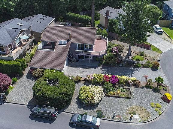Welcome to Skyline living on this 10,000± sq. ft. corner lot with south-facing water views. Enjoy entertaining on the large view deck. Cedar walls and ceilings in the main living and dining areas, along with freestanding gas wood stoves on upper and lower levels make for a cozy winter evening. The master suite on the upper main level has a bright atrium hot tub room with skylights, and a private secluded deck off the bedroom. Skyline Beach Club offers tennis, parks, social activities and more.