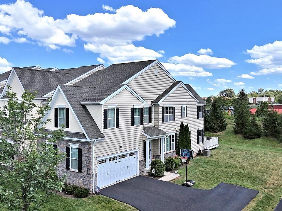 Welcome to this rarely available Dickinson model, a beautifully upgraded 4-bedroom, 3-full-bath,1 flex space/study end-unit carriage home offering over 3,000 sq ft of above-grade living space and a 2-car garage, located in the prestigious Thorndale community and served by top-rated North Penn School District. Step inside from the charming side entry into a bright and welcoming foyer with gleaming hardwood floors , recessed lights and elegant crown molding throughout the main level. Meticulously maintained by the original owners, every detail of this home has been thoughtfully cared for. The main floor boasts of a formal dining room, spacious family room, and a light-filled sunroom featuring a cozy propane gas fireplace. The gourmet kitchen is a chef's dream, complete with a large granite island, granite countertops, 42" cabinetry, tile backsplash, stainless steel appliances, and a pantry. A sunny breakfast area opens to the Trex deck offering premium privacy is a rare upgrade in the community perfect for summer entertaining and outdoor dining . A versatile first-floor study (used as a bedroom) and full bath offer an ideal setup for guests, a home office, or multigenerational living. Upstairs, you'll find a spacious owner's suite with tray ceiling, oversized walk-in closet, and a luxurious en-suite bath featuring tiled floors, dual vanities and a large walk-in shower. Three additional generously sized bedrooms, a hall bath, and a convenient upper-level laundry room complete the second floor. The expansive basement has plenty of space, ready to be finished to your needs or used for ample storage. Enjoy the low-maintenance lifestyle of a carriage home, with HOA covering snow removal right to your front door. All of this is situated on a premium lot within walking distance to the new shopping center, Planet Fitness, Towamencin Township Park, and scenic walking trails. Under five minutes to multiple grocery stores, shopping, fitness centers and entertainment options, Skippack Village, the PA Turnpike, Montgomery Mall, Wegmans, Costco, and major employers like Merck. Quick access to SEPTA's R5 line offers easy commuting to Philadelphia and Center City. This exceptional home offers the space of a single-family residence with the convenience of community living. Don't miss your chance to rent this move-in-ready dream home yours! Landlord pays HOA fees which includes trash, common area maintenance and snow removal