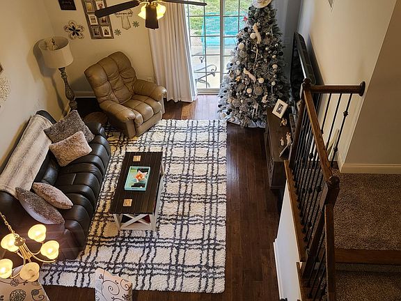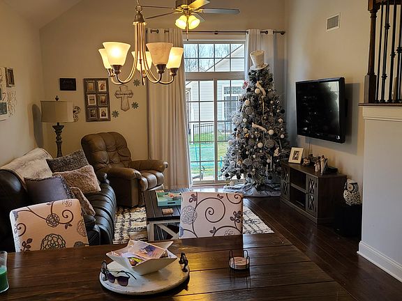 Stunning End Unit Townhome. Open floor plan w/vaulted ceilings, master bedroom down, large master bath w/extra large shower, extensive hardwood floors, granite counter-tops in kitchen and baths, stainless steel appliances, soft-close cabinets, 2 car garage, outdoor patio, and more! Easy living with all lawncare included in HOA.