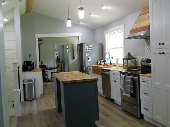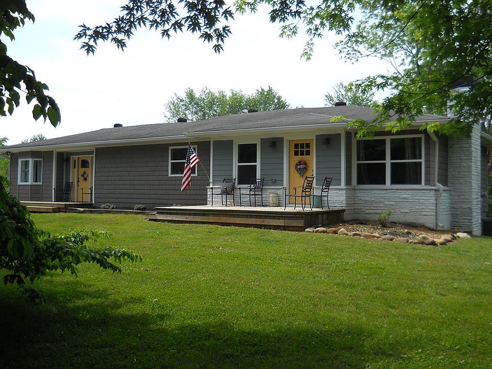 This home features a large kitchen and family room. Separate diningroom all with vaulted ceilings. 2 BR on the main level 2 in the finished basement. 2 bathrooms, master has claw foot tub and large walk in shower. The kitchen has new cabinets, coffee bar , island and stainless appliances. Great office! Covered back deck with view of the large back yard that has privacy fence. This all sits on 2.2 acres. Brand new roof!!!