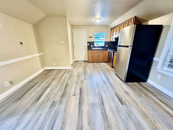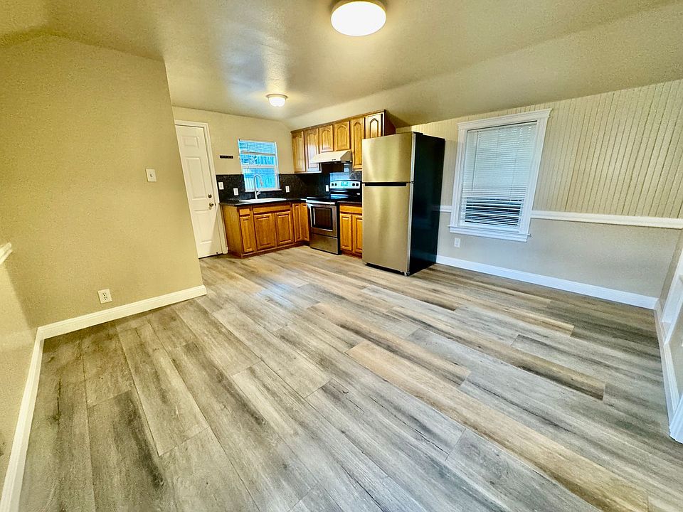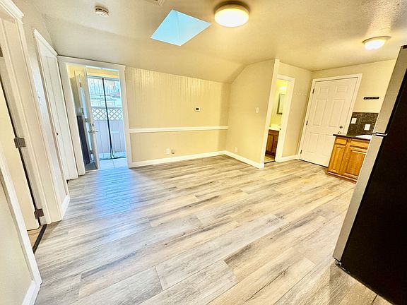 Welcome home to this charming and cozy 2-bedroom, 1-bathroom gem nestled on a tranquil street in Oakland. Step inside to an inviting open floor plan featuring a seamless combination of kitchen, dining, and living areas, perfect for entertaining or relaxing. The modern kitchen boasts stylish cabinetry, dark stone countertops, and sleek stainless steel appliances, including an electric stove and refrigerator. Both bedrooms offer comfort and convenience, each featuring cozy spaces with ample closet storage. The contemporary bathroom showcases elegant tile flooring, a shower-over-tub setup, and a chic vanity sink, adding a touch of sophistication. Enjoy your own private backyard oasis accessible directly from the kitchenideal for outdoor gatherings or peaceful relaxation. Additional highlights include beautiful laminate flooring throughout, radiant floor heating for year-round comfort, and convenient laundry hookups. With abundant parking available right in front of the property, this home offers ease and privacy in a desirable Oakland location. Don't miss the opportunity to make this delightful home yours!
