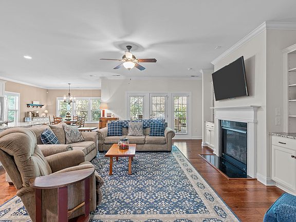 Craftsman style ranch with upgrades and finer details are the highlights of this home. Complete with neutral and soothing color palette, engineered wood floors in the living spaces, and plush carpet in the bedrooms make this space functional, beautiful, and adaptable for all your needs. Tucked away at the front of the home are 2 bedrooms, both with walk-in closets. Past the stairs is the expansive laundry room with an organization station next to the garage entrance. Filling the back of the home is the great room showcasing a slate surround, gas log fireplace flanked by built-in bookcases, crown molding, and a large bank of windows overlooking the covered deck, open deck, and wooded backyard. The dining space, adjacent to the kitchen, is sized to accommodate a variety of table arrangements and design aesthetics. Anchoring the dreamy kitchen is the expansive center island with wrap-around seating for 6 and extra storage, white cabinetry, gleaming granite countertops, tile backsplash, stainless steel appliances, gas range, home management station, and walk-in pantry for added storage. Relaxing owners' suite is situated downstairs and tucked privately along the right side of the home. It is complete with tray ceiling, 2 walk-in closets, private access to the covered back porch, and loads of natural light. Ensuite features dual sink vanity, soaking tub, tiled, walk-in glass surround shower with custom bench seat, private water closet, and separate linen closet. Upstairs showcases an expansive guest suite with bright windows for loads of natural light and complete with a full bath. Across the hall is the oversized, walk-in, floored attic space for ample, accessible storage or future conversion into livable space. Tyler Park is ideally situated in a wooded setting less than 1.5 miles from NC-55 or Sunset Lake Rd and minutes from downtown Fuquay-Varina with boutique and retail shopping, fine and casual dining, breweries, and town parks making this home ideal for all your commuting, entertainment, and recreational needs.