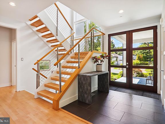 Experience luxurious living in this modern masterpiece located in the highly sought-after Crestwood neighborhood of Washington, DC. This exceptional contemporary residence showcases a sophisticated blend of glass, lighting, soaring ceilings, and wood elements, offering an unparalleled living experience just steps from Rock Creek Park. Revel in the prime location and the stunning interior of this home, featuring sunlit rooms, expansive windows, high ceilings, Maple wood flooring, and inviting open living spaces complemented by excellent outdoor areas. This distinctive home offers an inviting front entry with elongated glass and wood doors leading to a dramatic great room with a gas fireplace and a unique accent wall with display shelving, an elegant dining room, and an outstanding open professional style show kitchen. The top-of-the-line chef’s kitchen is equipped with exquisite Cherry cabinets with soft-close drawers, solid surface countertops (Urbatek by Porcelanosa), a GE Monogram appliance suite, a wine refrigerator, and two islands. The sun-drenched breakfast room, with a wall of windows, opens to a tiered stone terrace with bucolic views. The spirit of this home lies in its open-concept floor plan, with its integrated cooking, entertainment, and relaxation zones. The luxurious main level primary bedroom suite includes custom blackout blinds, an expansive walk-in closet with an organizing system, and a sumptuous spa bathroom with a double vanity, a deep soaking tub, and a separate glass-enclosed shower. The primary suite also has access to the rear terrace and offers gorgeous, treed views. The main level is complete with a sleek powder room and a light-filled bedroom / office with custom desks. The upper level offers two additional oversized en-suite bedrooms with attached bathrooms, a bonus room/yoga room, and a versatile landing area. Downstairs, there is a huge walk-out recreation room with recessed lighting and a speaker system, a fitness room, a spacious private en-suite fifth bedroom / AuPair suite, a dual entry bathroom, fabulous laundry room with a voluminous storage room, and an outside entrance with a stone patio. The lush, fenced backyard features mature landscaping, a built-in gas line to the grill, and a multi-level stone terrace – perfect for entertaining! Crestwood is valued for its convenient location, elegant homes on quiet tree-lined streets, and proximity to Rock Creek Park. Rock Creek Park provides miles of paved bicycle paths, as well as foot and horse trails that wind along the creek and through the woodland. The park also boasts an outdoor concert and theater venue, a tennis stadium, a planetarium, and a nature center. This wonderful home is just 0.8 miles from the Red Line metro station and minutes from the dining and entertainment centers of downtown DC.