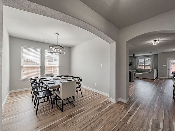 Situated on a corner lot, this move in ready 2 story home is extraordinary. Great space for everyone at over 2,500 square ft. Home boasts 5 bedrooms - rare for the area; plus extra 2nd floor room as office, game room. 3 bedrooms downstairs including the primary with ensuite. An additional full bath downstairs. 2 bedrooms upstairs with a full bath and the extra flex room. Beautiful flowing layout with separate dining, living, kitchen, breakfast areas. Eat at the breakfast bar to be part of the cooking party. Electric fireplace in the living room. 1st floor laundry off of the kitchen for your convenience. New Paint. Plenty of space in the backyard. Walking distance to elementary school. Community amenities include a stocked lake, trails, and bridges that connect to the pools, parks, playgrounds, fitness center, and dog park. Get this house today.