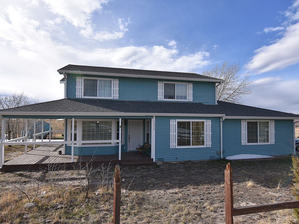 Spectacular views in every direction! Don't miss this gorgeous home nestled on 5 acres located in Elk Creek Ranches! This 3 bedroom, 3 bath home with 2 car attached garage, shed and heated workshop offers private, country living with easy access to Colorado Springs and Denver. You will really enjoy the expansive, wrap-around porch on this wonderful home. The living room features built-in bookcases and the dining room boasts a bay window, wood flooring and french doors that open onto the wrap-around porch. The spacious kitchen features custom built cabinets and plenty of counter space, a pantry, gas stove, desk area and wood flooring. Adjacent to the kitchen is the laundry/mud room which provides access to a powder room, the back patio and also the garage. On the upper level, you will find a master suite with a 3/4 bath and walk-in closet, plus an additional 2 bedrooms and a full hall bath. This amazing home sits on sprawling acreage with plenty of room to expand and also entertain family and friends. The property includes an insulated, heated shop (26x24) with 2-220V outlets and an overhead door. This shop could easily be converted back to a barn for this beautiful horse property! Store your outdoor equipment and toys in the large shed. Enjoy HOA free living at its best!