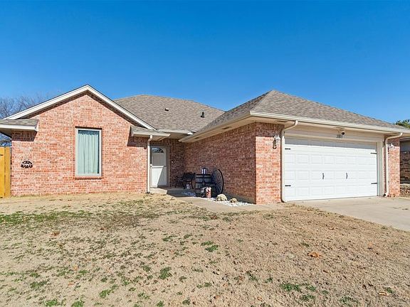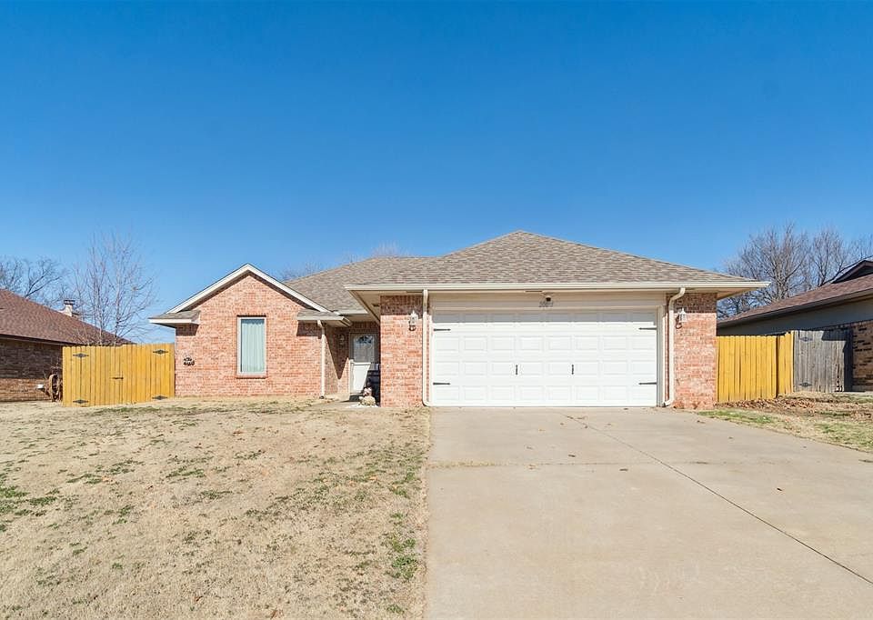 Darling home in the heart of Harrah! From the moment you walk in, you’ll be dazzled by all the updates! Heavy duty, vinyl plank flooring throughout most of the home. Large, open living room that flows nicely into the kitchen. The kitchen has been updated with fresh paint, granite countertops, and nice backsplash. Stainless steel appliances also! There is plenty of seating in the kitchen with a near-by dining area and seating at the countertop.The master bedroom has brand new carpet that was just installed and is spacious. It has a huge closet and the en-suite bathroom has a tub with shower. The other two bedrooms, both have vinyl flooring and nice closets as well. The hall bath is a full bath located right in between the other bedrooms. The house throughout has blinds. The garage is spacious and is two car with a storm shelter. The utility room is located inside the home, close to the garage. The back patio is screened in and just fabulous! It’s super spacious and just ready to watch those Oklahoma sunsets. There is also a storage building and the yard is huge! It has a full privacy fence all around it. Within 30 minutes from the metro and tinker. Don’t miss out on this home that has so many amenities!