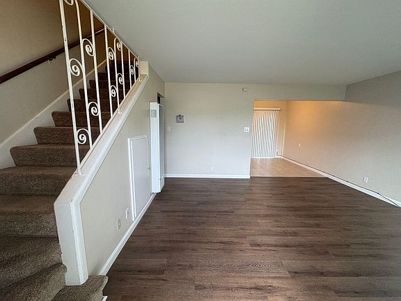 Two-Story Townhome unit, has been newly painted, new plank-flooring, new carpet on stairs, new interior doors & lighting. Downstairs has large living room, kitchen, dining area, and half-bath. Kitchen has granite counters, refrigerator, stove & dishwasher. Sliding door in dining area leads to cozy fenced patio. Upstairs are 2 bedrooms & 1 full bathroom. Located in a small townhome community with common area Laundry room with Coin Operated machines. Designated storage closet in laundry room. Carport parking for 1 vehicle. Trash service included. Non-smoking property. No Pets. Shown by Appointment only. DRE 01197438 Utopia East Bay Branch
