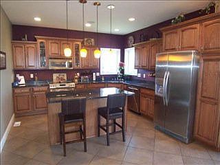 Very large custom built 1 1/2 story situated on 2 acres.Custom trims and solid doors thourghout Custom kitchen features maple glazed cabiets and gctops. All bathrooms have granite vanity tops. Living room /Den showcases beamed ceiling. Three bedrooms up all with walkin closets and princess suite with own bath, other bedrooms share a jack/jill bath. Basement features 5 th bedroom, full bath and oversized family room, wet bar and pool table area. Must C