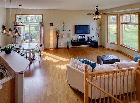 Your new home is MOVE-IN READY! Light, bright, spacious and open main level with high ceilings in kitchen, dining area and living room. Upper level features master with walk-in closet and private 3/4 bath. Additional bed and bath on upper level. Lower level features a bonus room as well a third bedroom and bath--perfect for teen privacy, a place for guests, or just a great bonus area. Townhome is within free bus zone to highly desired schools: EASTVIEW, CENTURY and LAKEVILLE NORTH. Perfect convenient location--close to parks, trails, library, restaurants and shopping. Watch this summer's fireworks from the deck! Please feel free to contact me at 952-898-1358 or reply by email. FEATURES: *Microwave *Hardwood floors *Air conditioning *Refrigerator/Dishwasher *Walk-in closets *Deck, *Double Garage parking *In Unit laundry room with washer/dryer *Oven /range *Gas Heat SERVICES PROVIDED *Lawn Care *Snow Removal *Trash Removal Utilities Paid By Tenant: All Other Pet Policy; 1 dog up to 25 lbs. - Deposit and other fees apply This home does not qualify for section 8. SERVICES PROVIDED *Lawn Care *Snow Removal *Trash Removal Utilities Paid By Tenant: All Other