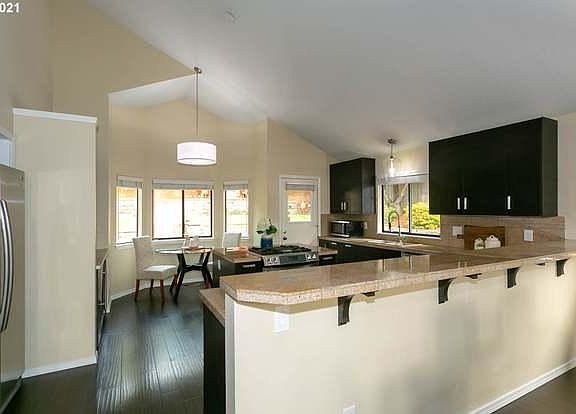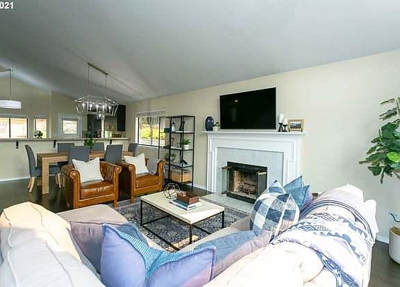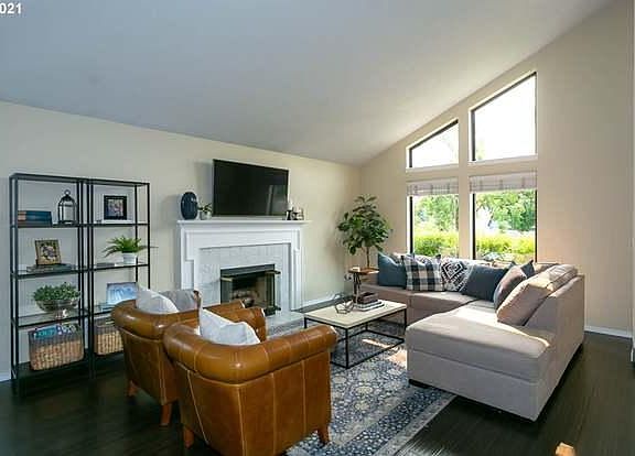 Freshly updated home in popular Tualatin near neighborhood park. Vaulted, open entry and great room flooded with light. Remodeled kitchen with granite, stainless appliances and eating bar for 4. Updated bathrooms and new lighting. Spacious and newly landscaped backyard with patio, fire pit and putting green. Lives larger than square footage. Move in ready!