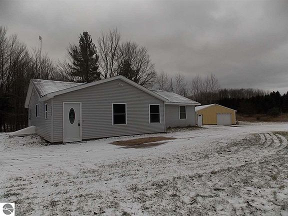 This home sits on 4.03 acres with a country setting just minutes from Cadillac. The living, dining and kitchen area are an open floor plan. There is a 26x16 room that was used as a 3rd bedroom but could be additional living space as a family room. Main floor laundry/mudroom combination. Front entry porch has built in storage. Pellet stove was added in 2018, central air. The pole barn is part workshop and detached 2 car garage. Don't miss this gem, it would be a great year-round or vacation home. *Bonus* if you qualify for a VA loan the current mortgage interest rate is assumable at 3.875 %. Survey attached.
