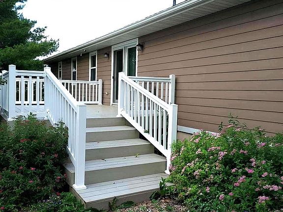 Country living at it's finest. This property has it all! Large 1,870 sq ft 3 bedroom quality built home built in 2003 that sits on 8 acres M/L. Many updates & maintenance free additions added in recent years. Features of this home include Geo Thermal heat & A/C, new Everlast siding, Decra shingles, walk out basement, hickory kitchen cabinets, Swanstone counters, 3 bathrooms-2 have cherry cabinets & a whole house generator with automatic switch over. This property has gardens galore, flowers, vegetables & fruit trees! Perfect for quiet living in the country with the ability to have livestock, wild life and plenty of room to expand & grow. Schedule your showing today! Outbuildings include 36 x 48 x 12 pole building, 36 x 56 barn, 20 x 32 livestock barn and others!