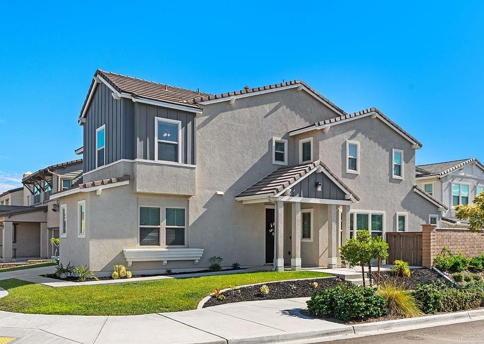 Quite simply, perfection! In the prestigious "Village of Escaya" this 2019 home delivers “Wow” and then some. The Seville III model’s story begins on a rarely available large corner lot. And continues through every detail of construction to each of the numerous high-end finishes and upgrades. Nothing was overlooked. The open floor plan, high ceilings, abundant natural light, and lighting details, along with beautiful wood flooring, offer life in style. The bedroom with en-suite bath on the main level provides options – guests or multigenerational living. The focal point of the kitchen is the leathered granite over-sized island with a large farmhouse sink. High-end Café appliances, Samsung Family Hub refrigerator, and walk-in pantry add the perfect finish. There is counter seating at the island and a wealth of cabinet storage – a true dream kitchen. On the way upstairs you’ll note the wide modern staircase with landings mid-way and at the top. You’ll remember the feeling of open spaces this home provides. The loft is perfect for a TV room, home office, or playroom. The Primary Bedroom offers a genuine haven from the daily grind. It's en-suite bath provides spa level amenities that will make each day feel like a staycation. The walk-in closet will make planning your wardrobe a special treat. Even the laundry room is a well-equipped delight with high-end Samsung Washer and Dryer. Then, to relax, head out to your private oasis in the back yard. You’ll enjoy the green grass and landscaped border as you share refreshments with friends and family in front of the built-in gas fireplace. You might even toast a marshmallow or two! The nationally noted Escaya community features a park with soccer field, basketball courts, and biking trails that wander to the ocean. Newer schools, open roads, easy connections to regional destinations and a choice of upscale shopping and entertainment amenities at Otay Ranch complete the advantages. You'll look forward to calling this outstanding property "home."