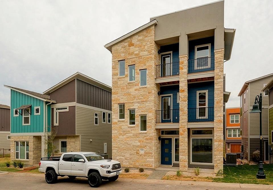 Unique 3br 2.5 bath plan w/ open kitchen and high ceilings. Also includes Study in master br. Has a 1 car detached garage and additional drive /included garage door openers. Located just 1.8 miles from downtown Austin in a gated community. Very well appointed with upgraded wood and tile flooring, cabinets and countertops throughout. Custom mudset tile walkin shower. Upgraded baths with high end tilework and counters. Highly energy efficient with spray foam and cellulose insulation. AVAILABLE NOW!