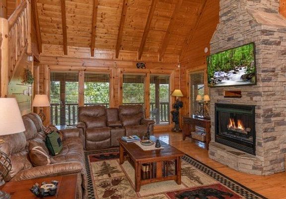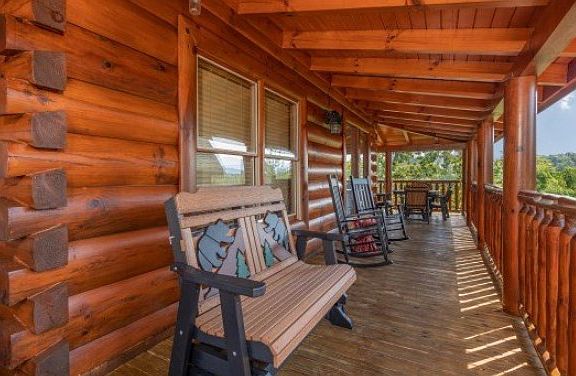 1031 exchange time!!! Easy to show --- Bear Bottom Retreat is a meticulously maintained 4 bedroom, 4.5 bath log cabin in Bear Creek Crossing that is currently used as a vacation rental. This bear-themed cabin has a newer hottub, bear carvings, views, decks and lots of space to relax. Open floor plan on the main level has a spacious kitchen with coffee bar, stainless steel appliances, Corian countertops, and a large living room with two story stacked stone new electric fireplace. There is also one bedroom with a king size bed set and full bath on the main level. Upstairs is a large master suite with a king size bedroom suite, cathedral ceilings, large whirlpool tub, and large private bathroom. Downstairs you will find two additional bedrooms and full bathrooms, along with a large game/rec room that features an additional stacked stone new electric fireplace, multicade, and pool table as well as a microwave and coffee bar. Both the main level and downstairs level feature wrap around decks for relaxing while the sun sets after a long day hiking or visiting Dollywood, with the main level deck having high end poly furniture. Cabin is equipped with exterior security cameras, wifi door lock, smart thermostats and 2 HVAC units. Income for 2022 $106,442. This gated resort has great views, outdoor pool, mini-golf and a great location.