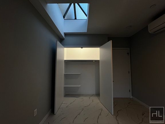 Step into this charming 2-bedroom, 1-bathroom apartment that perfectly blends style and functionality. Located on the 3rd floor, this inviting space features a skylight a open-layout kitchen equipped with sleek stainless steel appliances, including a dishwasher, making cooking and cleanup effortless. The spacious living room is designed for comfort, complete with an AC unit to keep you cool, and it opens onto your very own private balcony-a serene retreat with elevated views. Both bedrooms are thoughtfully designed with a skylight, AC units. Bedrooms have closet space, including built-in shelving for all your storage needs. The apartment is beautifully accented with elegant marble-tiled flooring, adding a touch of luxury to every corner.