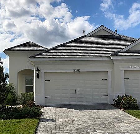 Live in Lakewood Ranch for under 300K! Seller's move is Buyer's gain. Built in 2016 by Neal, this "Tidewater" villa, w / NO CDD, is a favorite. Open floor plan boasting over 1500 sq ft. Eagle Trace is a gated, maintenance-free community. The french door entry of this lovely home opens into a large foyer next to a sun-filled room, with double doors, which makes for a great office/family room. The kitchen is a delight with wood cabinetry, quartz counter tops, breakfast bar, mini subway tile back splash, GE stainless appliances and pendent lighting over breakfast bar. The cook of the house will appreciate the gas stove for cooking and entertaining. Nice size pantry for extra storage. The kitchen opens into a spacious great room complete with tray ceilings, porcelain tile flooring thru out foyer, den, great room, kitchen, dining room and baths. Shades/blinds on every window. Sliding doors lead out to a screened lanai. Good size master bedroom w/ side by side closets and master bath w/ dual sinks. Large walk-in shower. Additional bedroom and full bath. Separate laundry room. Seller is leaving newer Speed Queen commercial washer and dryer. Two car-garage w/ built in utility sink, "Gorilla shelving," + hurricane shutters. Community pool, tennis courts, two bark-parks, for the furry members of your family, plus playground. Nearby, the new shopping center " The Green at Lakewood Ranch" including Earth Fare - an organic supermarket, opening soon, LA Fitness and many more shops and services so..........Lucky Buyer.