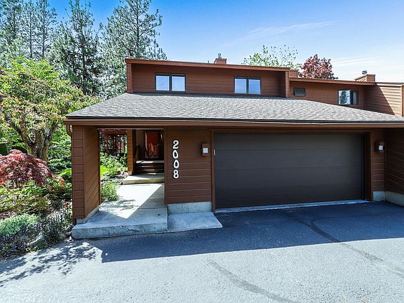 Unique condo on the south hill! Must see this two-story condo end unit that backs up to a large city-owned green space. Private back deck and patio has a 100% treed view. Gorgeously landscaped yard all taken care of by the HOA. 2 Car Garage with opener. Beautiful granite counters in the kitchen with stainless steel appliances, including double ovens. Vaulted ceilings surround the two story fireplace wall and allow for skylights to bring in lots of natural light. 3 bedrooms upstairs, including the primary suite that includes a bathroom and slider out to deck with view of the trees. This does not feel like a condo, it feels like a home with privacy and green space views! Minutes to shopping on 29th, walk to grocery stores or bus easily.