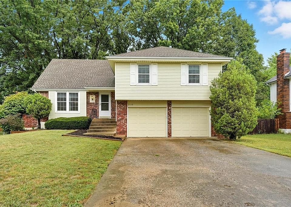 Fantastic location in the heart of Olathe! Spacious primary bedroom has a walk-in closet, second closet and primary en suite. Two more bedrooms and a full bath on that level; 4th bedroom upstairs is extra large! Kitchen has lovely new floors, new paint and includes all appliances, even the refrigerator. Family room and dining room both have new carpet! Head downstairs for a 2nd family room and a half bath. Basement space has a hobby room and plenty of storage! Newer HVAC keeps your home comfortable! Relax on your covered deck and enjoy a generous sized fenced yard. The exterior has maintenance-free vinyl siding. Washer and dryer stay too! Such an adorable home!