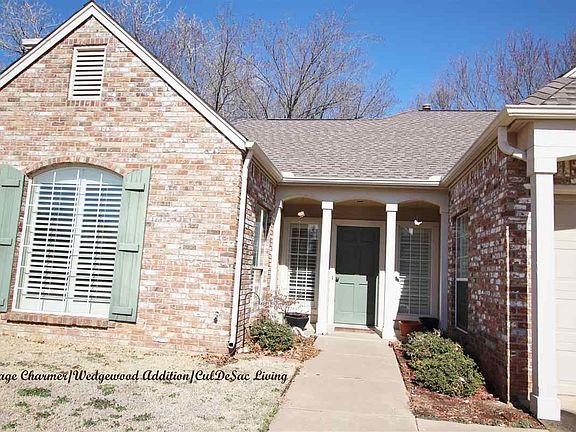 COTTAGE CHARMER.. In Wedgewood Addition. This cute 3 bdrm; 2 full bath home with custom shutters is now available. Home features large living area with fireplace. Galley kitchen with all appliances including refg. Eat in dining area from kitchen is open to living room. Master bdrm with en suite bath. Master bath includes double sinks; shower/tub combo. Separate laundry room with extra cabinet storage and hanging bar. Backyard features wood privacy fencing; larger covered patio. Updates include dishwasher & siding. Custom shutters. Located in culdesac with center island. Close to Shopping centers/Restaurants & more.