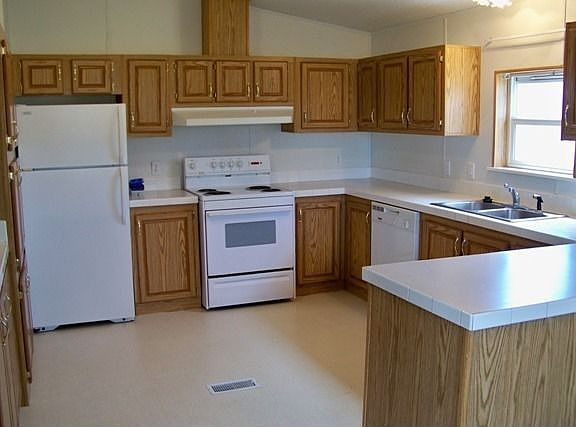 Clean, well maintained manufactured home with new carpeting throughout, all appliances included, 3 bedrooms, 2 baths, newer deck, landscaped, oversized two car attached garage with storage & freezer space, plus a newer shop building, all on a 1/2 acre lot! RV parking, gardening area. Good location, ready to move in. Call soon for an appointment to view. Great buy!