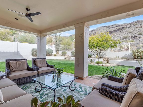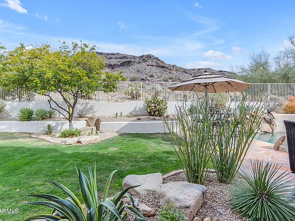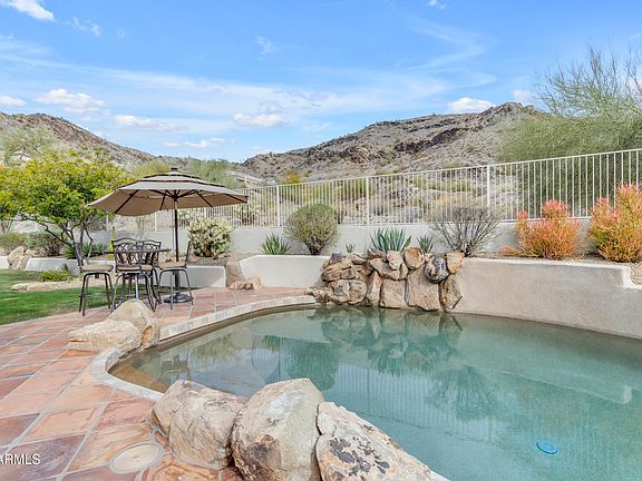 "Outdoor Oasis- Backing to South Mountain Preserve, enjoy time in this space which brings a special serenity. The backyard features a Pebble Tec pool with natural select boulder accents, a large covered patio, built-in BBQ, and a lush grass yard, perfect for family fun and entertaining.