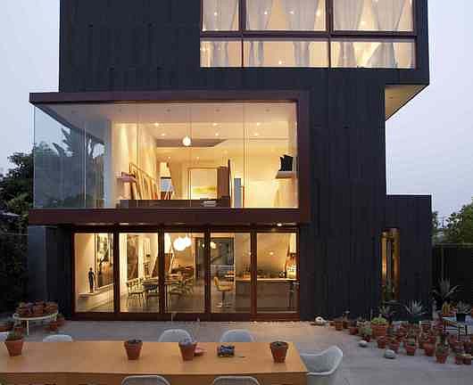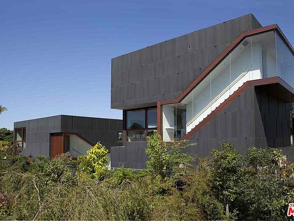 This LAB+ international architecture prize-winning residence is located west of the Sawtelle "Strip." Adjacent to a one-acre nursery, the two custom-patterned, zinc-clad buildings are connected by a private courtyard that leads to an open-plan living area and kitchen. Glass-walled staircases affording views of the neighboring greenery ascend to an integrated office/gallery space and guest suite on the second floor. The top level master suite has a sizable master bath and views in multiple directions. An expansive, natural light-filled art studio/loft is located on the top level of the front building along with a bonus room and bath. A separate guest apartment as well as a four-car garage are on the ground level of the front building. This is a one-of-a-kind property for entertaining, displaying an art collection, or for simply relaxing in peaceful surroundings. The 3 story main building is steel constructed adding EQ safety,durability, energy efficiency & environmental benefit