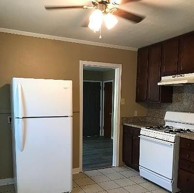 3 bedroom; living room; den; eat in kitchen furnished with stove, refrigerator and dish washer; laundry room with washer and dryer; fenced back yard