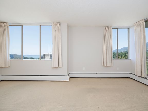 Available Now! Perched high on the 18th floor, this 2-bedroom, 1-bath unit offers breathtaking panoramic views of the city skyline, ocean, and North Shore mountains. Step into a bright and airy living space that captures the stunning scenery from nearly every angle. This home features a functional layout, plenty of storage in-unit, and a private balcony ideal for morning coffee or evening sunsets. Located in the Seymour building at Woodcroft Estates a gated, well-managed community with 24/7 security, indoor pool, sauna, fitness centre, and landscaped grounds. Just minutes to Park Royal, Capilano trails, and downtown Vancouver via Lions Gate Bridge.