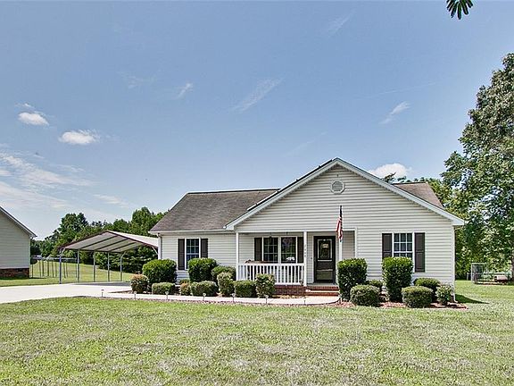 **Highest & best offers due by 8:00 PM tonight (7/29)** Charming home in desired location on 1+/- acres! Great open floor plan has living room with hardwoods & vaulted ceiling that opens up to the dining area. Nice kitchen with all appliances remaining, including refrigerator. Owner's bedroom has bath with tile flooring. New heat pump in 2018 as well as energy saving solar panels! Relax on the front porch or out back on the deck overlooking the nice back yard! 10 x 16 storage building remains. Nice paved drive & detached carport. Awesome location! USDA eligible area!