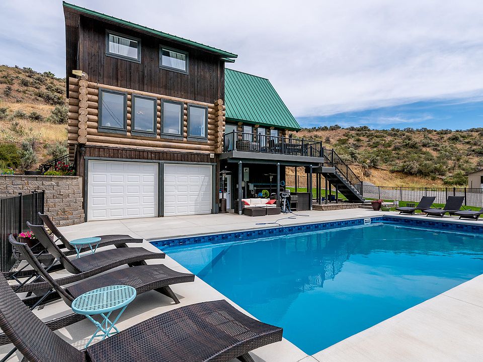 Newly remodeled country setting log home. This one of a kind 3 Bedroom/2.5 Bath home sits on 1.6 acres of breathless views. Your welcomed to this charming home by a covered entry porch and enter to a Vaulted Living Room w/ pellet stove and beautiful wood flrs. access to amazing entertainers deck. Open kitchen w/ quartz ctrs, pantry & extensive amount of cabinetry sits adjacent to the eating/dining area. Upstairs is a Bedroom & Airy Master Suite w/ oversized closet, dbl vanity, standup tiled shower, soaking tub. Basement has a cozy family room, Bedroom #3/ Newly remodeled Bathroom w/ tile flrs and standup shower, Extra Room (possible bdr 4 or pool room) & additional storage room. 2 car garage (1 usable garage for car parking).