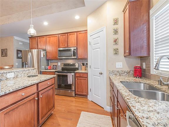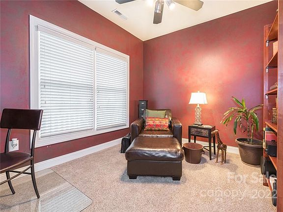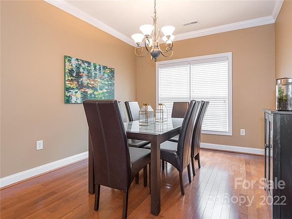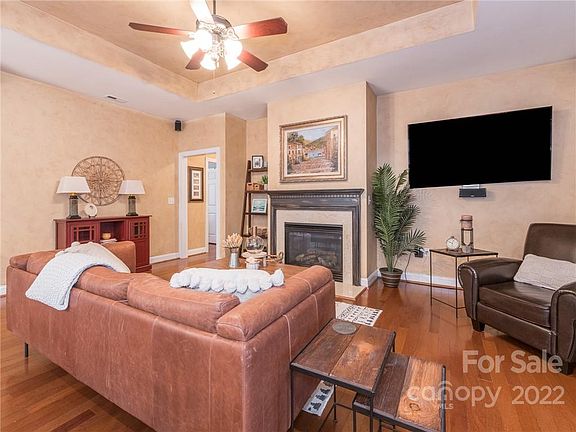 Beautiful, open home in a patio style community just minutes from Downtown Matthews, NC. Home opens to covered rocking chair front porch. Formal entryway leads to an open concept living space. Living space is wood plank flooring. Cozy Living room w/ tray ceiling & gas fireplace. Large gourmet kitchen has dark wood cabinets, granite counter tops, S.S appliances, separate pantry, & large island for additional bar seating. Breakfast nook off to the side has door leading to screened-in porch w/ ceiling fan & privacy shades. Ideal for any season. Formal dining room and a home office space inside as well. Office was once a bedroom. Can easily convert back. Primary bedroom w/ tray ceiling & attached ensuite. Soaking tub, dual vanity, stand-up shower and walk-in closet provide tons of space. 2nd carpeted bedroom w/ walk-in closet & full hall bath for family/guests. Fenced in back yard has area for a firepit and an already existing patio perfect for grilling! HOA includes lawn and termite care.