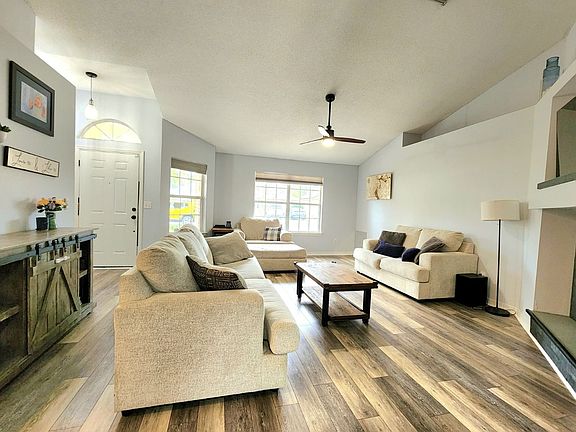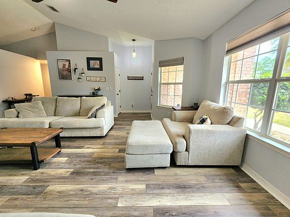 Discover your dream home in this open and spacious 4-bedroom, 2-bath beauty, perfectly located near top-rated schools and the back gate of NAS Pensacola! This home offers a delightful mix of comfort and style, starting with its beautifully landscaped yard that welcomes you in. Step inside to a split floor plan with laminate and tile flooring in all the common areas. The bright and airy kitchen features charming white cabinets, appliances, a convenient reach-in pantry, and a breakfast bar perfect for casual meals. The living room is warm and inviting, with sleek laminate flooring and a decorative candle-lit fireplace adding a touch of elegance. Enjoy your morning coffee in the cozy breakfast nook, complete with French doors that open to a peaceful, fenced backyard. The master suite is a true retreat, showcasing trey ceilings, a ceiling fan, and a tiled master bath with all the features you could wanta large walk-in closet, double vanity, linen closet, water closet, garden tub, and a separate tiled walk-in shower. Three additional bedrooms and a laundry room with a washer and dryer (as is) complete the interior. Outside, the backyard oasis awaits! Relax on the covered patio or entertain on the wood deck, partially shaded by a pergola. With its thoughtful design, beautiful features, and prime location, this home has everything you need to enjoy Pensacola living at its finest. Pets approved by owner approval only. $75 App fee per adult, $50 military. Subject to credit check, background check, employment verification, and rental verification. CERTIFIED Funds required for move in!