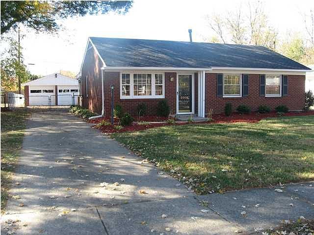 Darling brick ranch features 3 bedrooms,living room,formal dining area, kitchen, & sun room or den.Professionally painted interior & exterior.Painted in soft,warm colors.Neutral carpet thru out.Tile flooring in the kitchen & bath.Fully equipped kitchen features new kitchen counter tops,new double bowl sinks & faucet.Over sized 2 car garage with openers. Nice storage building, also. Fenced back yard.Immaculate move-in condition! VERY nice home! Hurry!! Agent is part owner.