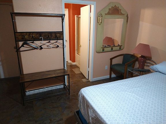 This is our queen bed master bedroom that includes its own full private bathroom with shower, tub, and sink. The room also contains a large glass desk with broadband high speed Internet for maximum productivity. As well, included are modern appliances such as 40 inch smart TV, Mini-fridge, and microwave. No Smoking inside. Ask permission to bring guests into the house. Lease is revocable with 60 day notice. Housekeeping (linen change, room cleaning) available for an extra charge.