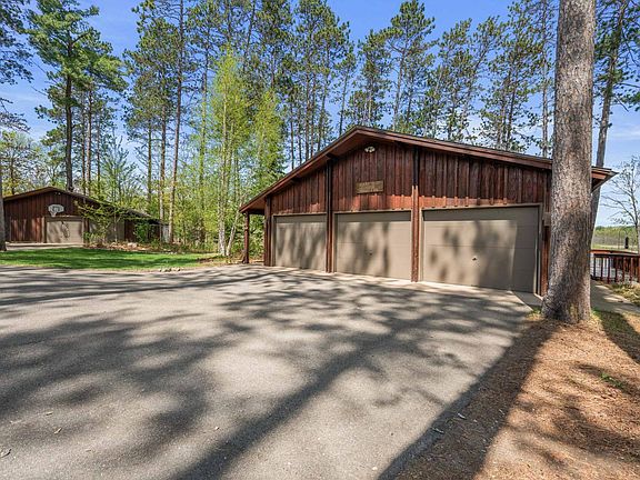 Secluded amongst the towering pines on just over an acre with 155 feet of sandy shoreline on McKinney Lake, this remarkable 4 bedroom, 3 bath home encompasses the ultimate Up North retreat. From the moment you step inside, you’re greeted with soaring cathedral ceilings and expansive panoramic windows, framing breathtaking lake views that bring the outdoors in. The open concept main level boasts a spacious living room with a cozy fireplace and a dining area that flows seamlessly into the kitchen and charming sitting area with access to the deck. Also on the main level, you’ll discover a full bath and 3 bedrooms, including a tranquil primary suite complete with a walk-in closet, 0.75 bath, and direct access to the deck. The walkout lower level is an entertainer’s dream, offering a spacious family room with wood-burning fireplace, wet bar, and 0.75 bath with an adjoining sauna for ultimate relaxation. An additional bedroom, along with laundry and storage space, completes this level. For your convenience, the home includes an attached 3-car garage, as well as a detached 26 x 36 garage with an additional 12 x 26 bunk room—ideal for guests or extra storage. Whether you’re looking for a year-round retreat or a seasonal getaway, this exceptional lakeside property offers everything you need to enjoy life on the water.