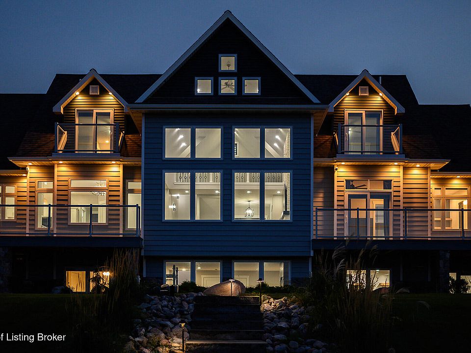 GREAT NEW PRICE! Waterfront luxury redefined - this extensively updated 6-bedroom Whispering Bay estate is now offered at a new price, presenting an exceptional opportunity in one of the area's most coveted communities. Walls of north facing windows fill the open-concept main floor with natural light, highlighting a beautiful, updated kitchen with premium appliances, butler's pantry, and seamless flow to dining and living areas. The primary suite features a fully remodeled spa-like bath, walk-in closet, and private deck access. Upstairs offers a loft, two bedrooms with private balconies and en-suites, plus a bonus room with wet bar. The lower level boasts a custom bar, fitness space, two additional bedrooms, and abundant storage.