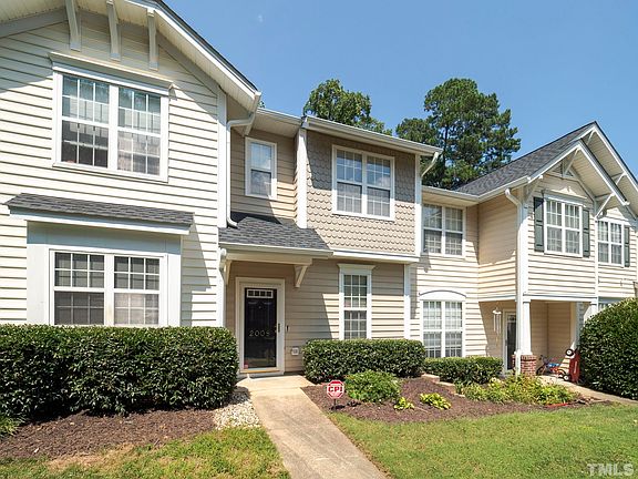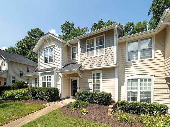Nice two-story townhome w/an open floor plan in established neighborhood! Living room welcomes w/corner gas-log fireplace & TV niche, opens to a private patio buffered by hardwood trees. Additonal features include: arched pass-though between kitchen & dining; vaulted ceiling in master bedroom; walk-in closets in both bedrooms; powder room on main level; storage room off private patio in back; and two assigned parking spaces. Adorable curb appeal and great location, close to NCSU, Downtown, access to I-40!