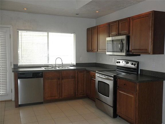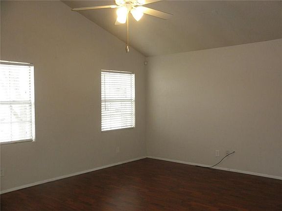 Home has been updated in recent years with kitchen cabinets, countertops, sink, microwave, range, and bath vanities. Large living area has laminate flooring, soaring ceiling. Big eat-in kitchen with stainless appliances, smooth cooktop, ceramic tile flooring. All bedrooms have ceiling fans, recent carpet, and are nice sized. French doors lead to patio and side yard. Greenbelt Park is just down the street. See it before it's gone! ONE pet may be allowed on a case by case basis, no aggressive breeds. Owner holds a Texas Real Estate License.