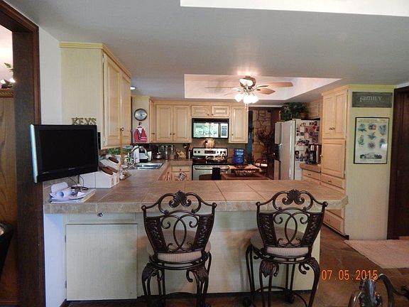 This lovely homes features 3 bedrooms, 2.5 bathrooms with a safe room, and a fireplace in the master bedroom, as well as the living room. Open floor plan with massive den, dining and office area. This home has been well cared for with nice fenced back yard with lush mature trees. Extra concrete to park RV or basketball. Located in the very desirable Kickingbird Estates, across from Kickingbird tennis courts, golf course, and close to restaurants, and movie theater and shopping.