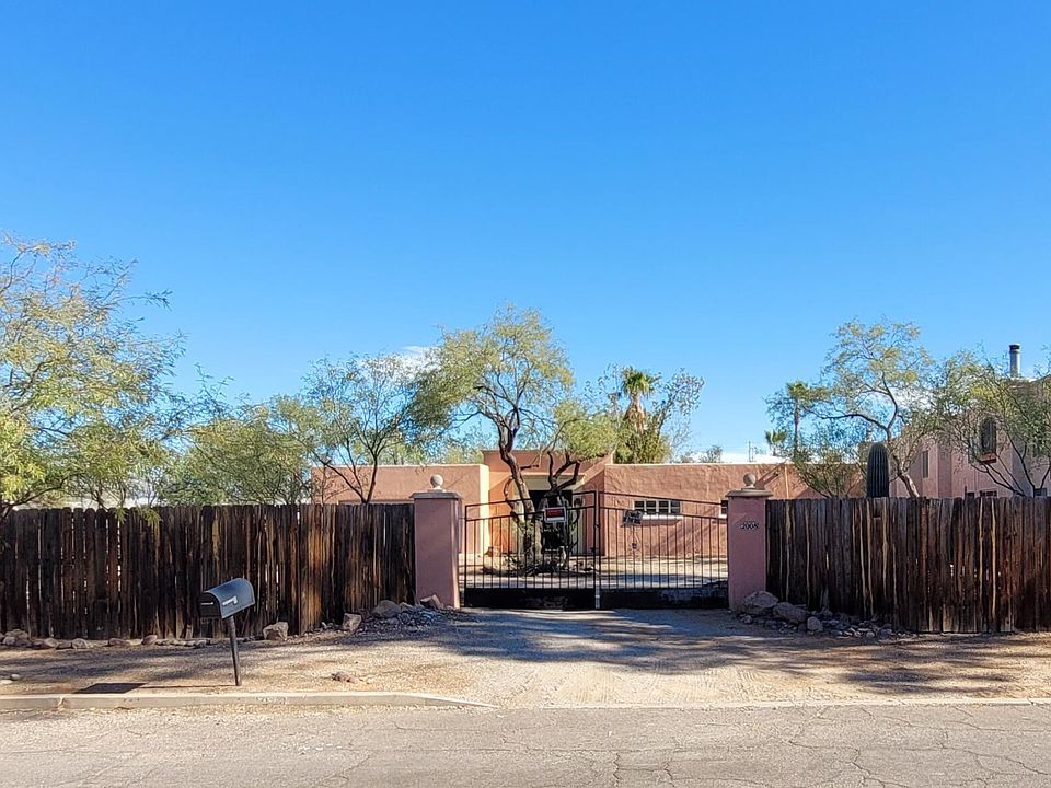 Potential abounds with this large southwestern style home located on a fully enclosed .46 acre midtown R-2 lot. Park your cars, toys and RV on the circular driveway or inside the 4 car garage. Enjoy the stylish gated Spanish entry and Mexican hacienda style wooden doors that open to an extremely large courtyard featuring a large fountain. Keep walking to view the large and deep pool with views of the Catalina mountains. This 4 bed, 3 bath home features a split floor plan with wood beams, vega's, 3 fireplaces and newly installed Zoned HVAC. Master bedroom includes a separate bonus room and a master bath that includes a wood sauna. Home is next to community garden, walking distance to multiple grocery stores and restaurants. This home is ready for someone to make it their own, are you ready